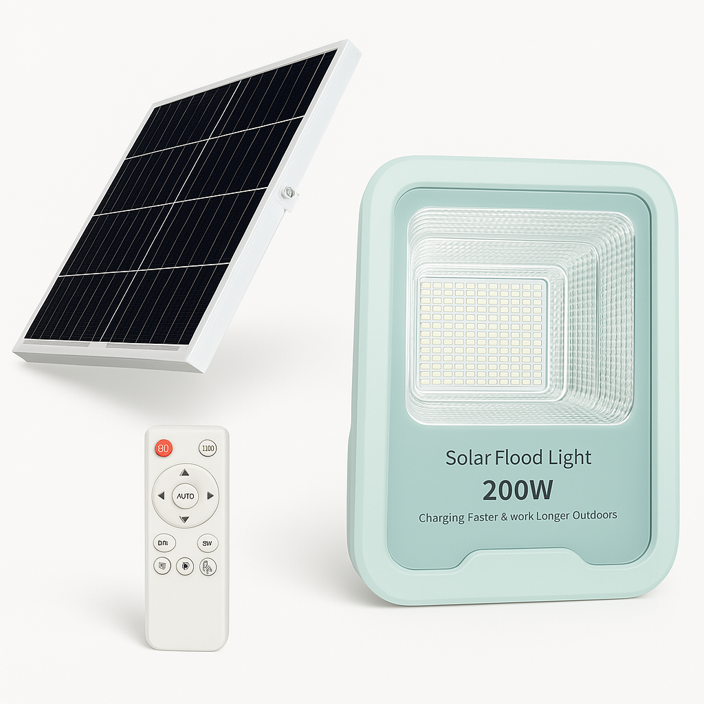 Le projecteur solaire LED de 100W est conçu pour fournir un éclairage puissant et économique pour les grands espaces extérieurs. Grâce à son panneau solaire haute performance, ce projecteur capte l’énergie du soleil pour offrir une lumière intense toute la nuit, sans coût supplémentaire d’électricité. Caractéristiques : Puissance : 100 Watts Source lumineuse : LED haute efficacité pour une lumière blanche brillante et uniforme Source d’énergie : Panneau solaire intégré, assurant une recharge rapide et efficace Matériaux : Boîtier robuste en plastique résistant aux UV et aux intempéries (IP65), conçu pour durer en extérieur Installation : Montage facile au mur ou sur poteau, sans besoin de câblage électrique Autonomie : Jusqu’à 12-14 heures de fonctionnement après une journée de charge complète Capteur intelligent : Détecteur de luminosité pour un allumage automatique au crépuscule et une extinction à l’aube Options de contrôle : Télécommande incluse pour régler l\'intensité lumineuse et les modes de fonctionnement Avantages : Éclairage puissant : Parfait pour sécuriser et illuminer de grandes surfaces comme les cours, les jardins, les parkings, et les bâtiments commerciaux Installation sans tracas : Fonctionne sans connexion électrique, éliminant les coûts de câblage et de main-d’œuvre Écologique et économique : Utilise une énergie renouvelable, réduisant votre facture d’électricité et votre empreinte carbone Durable et résistant : Conçu pour résister aux conditions climatiques difficiles, garantissant une performance fiable tout au long de l’année Applications : Idéal pour les grandes propriétés, les parkings, les installations industrielles, et toute zone nécessitant un éclairage extérieur puissant et autonome. Spécifications supplémentaires : Panneau solaire : Taille optimisée pour une charge rapide même en conditions de faible luminosité Température de fonctionnement : -20°C à 60°C, adapté à toutes les saisons